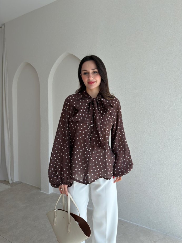 MOLENE Puantiyeli Bluz 9845 - Acı Kahve