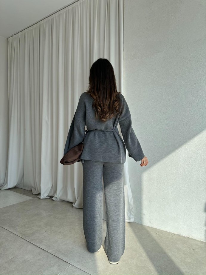 CANDİS Triko Fularlı Takım 8512 - Kahverengi
