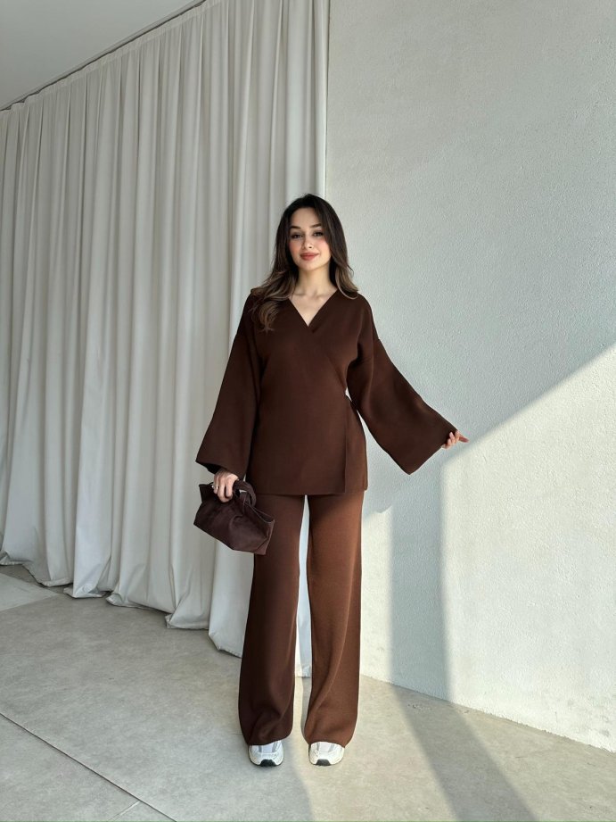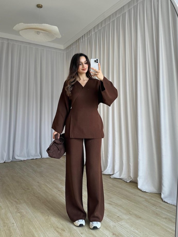 CANDİS Triko Fularlı Takım 8512 - Kahverengi