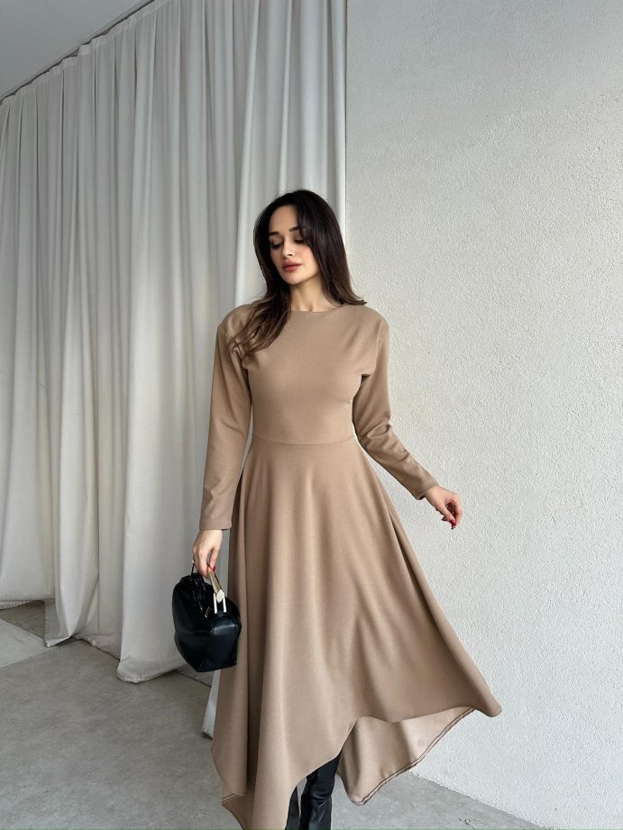 FRAPPE Midi Elbise 8711 - Acı Kahve