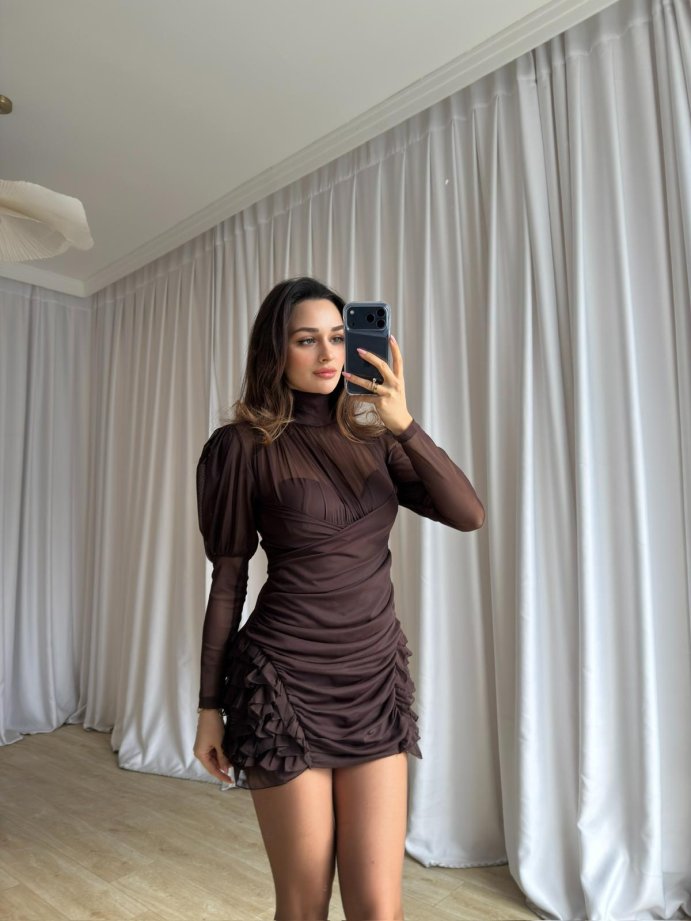 MORGAN Mini Elbise 8818 - Acı Kahve