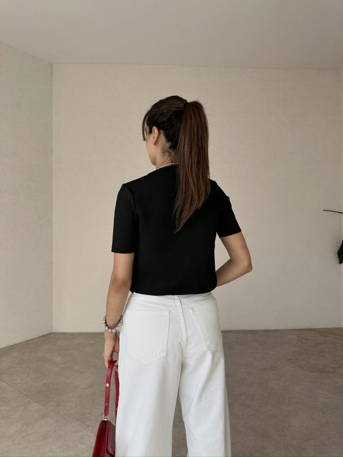 Takım crop göğüsten aşağı 28 cm uzunluğundadır.