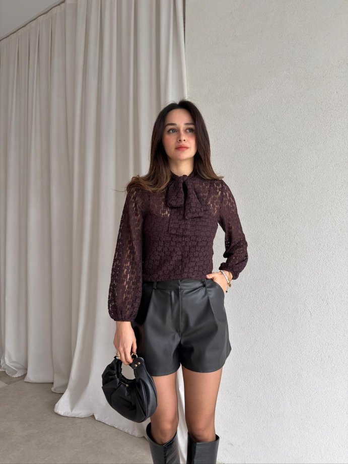 MOUR Dantelli Bluz 8166 - Acı Kahve