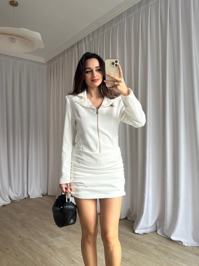 NARİSSA Fermuarlı Mini Elbise 9300 - Beyaz