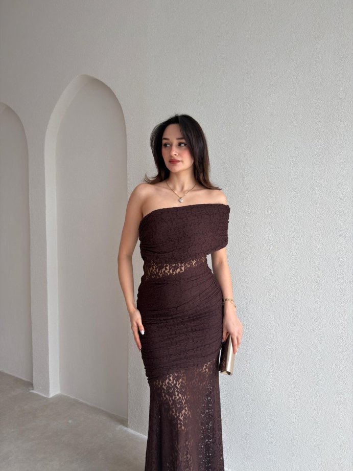 NARİYA Tek Omuz Elbise 3927 - Acı Kahve