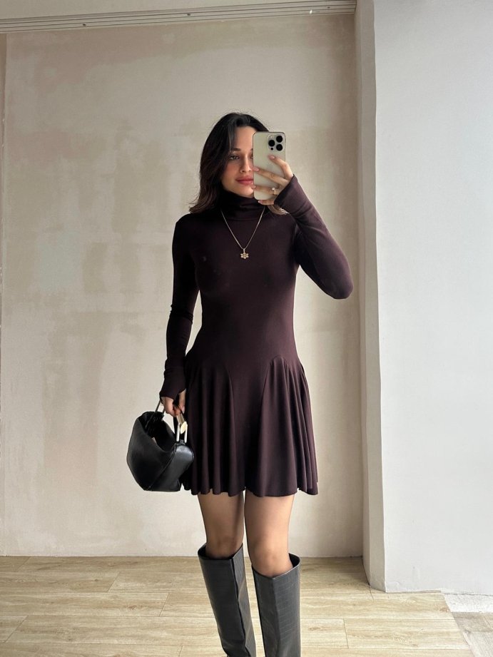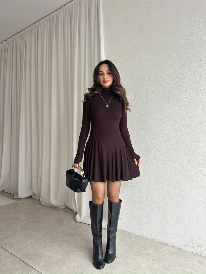 NİA Elbise 8233 - Acı Kahve