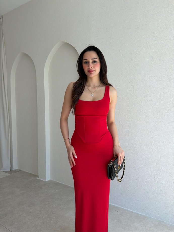 OCEAN Maxi Elbise 2126 - Kırmızı