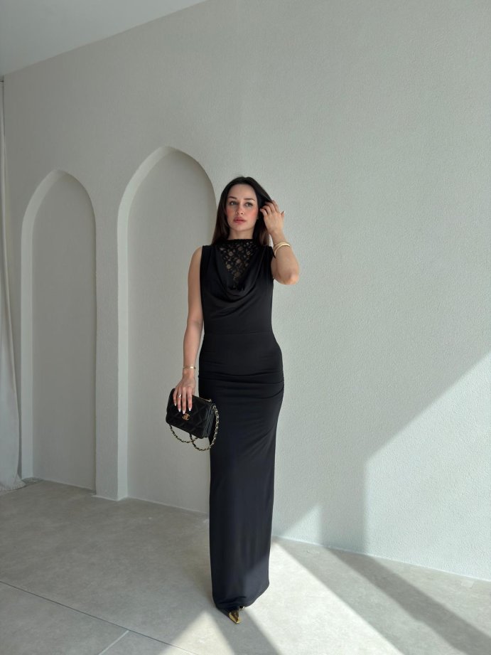 ODELLA Dantelli Maxi Elbise 2024 - Siyah