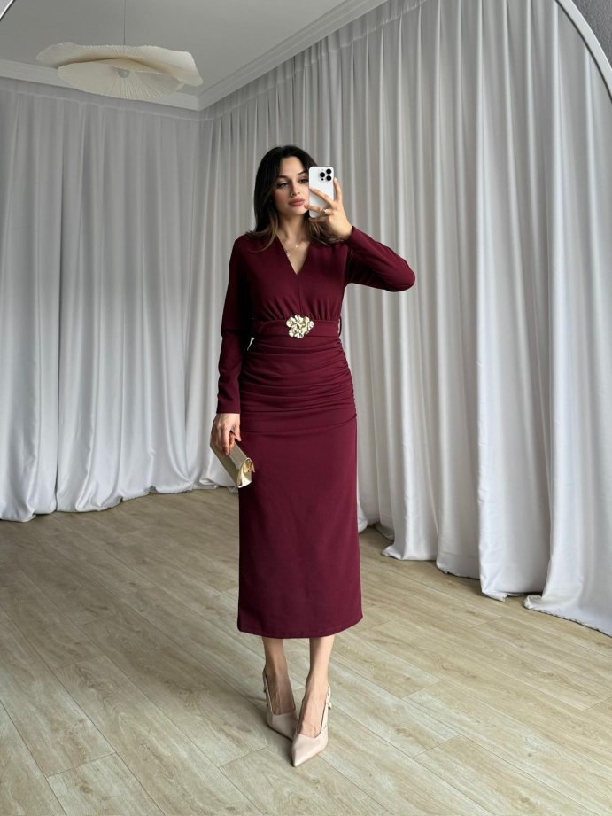 OMNİA Midi Elbise 8411 - Bordo