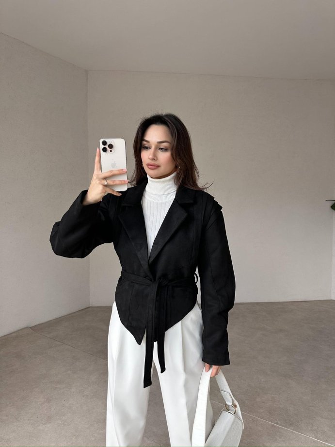 Omuz Detaylı FRANCİS Süet Ceket 1255 - Siyah