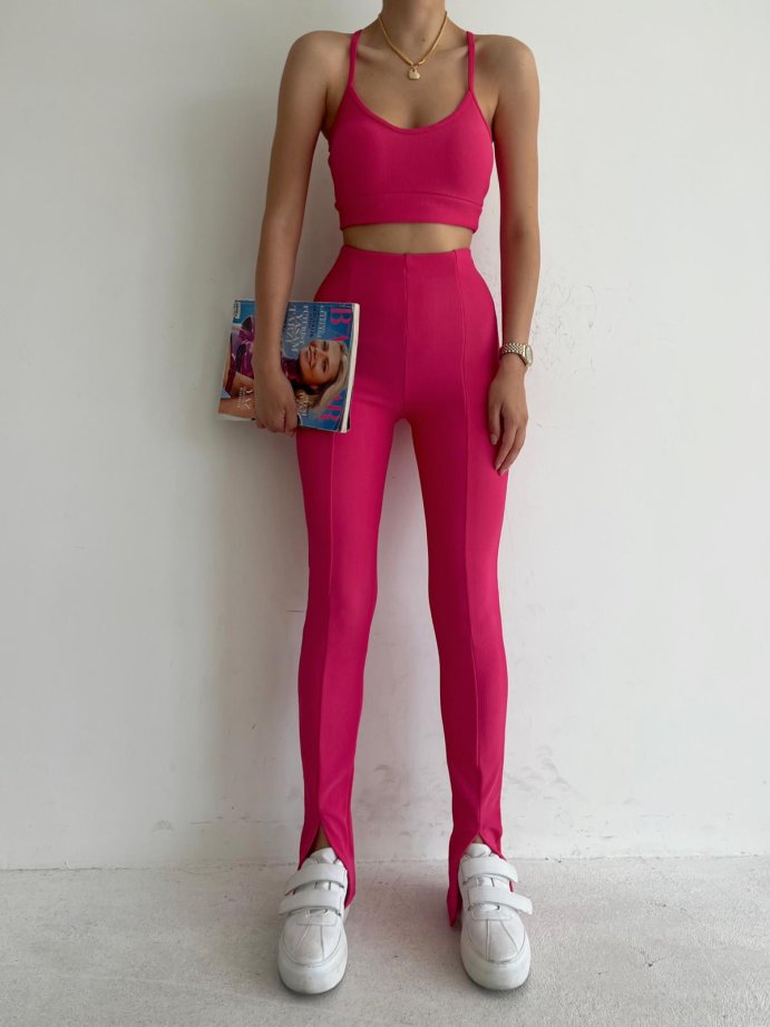 Front Slit High Waist Naomi Leggings 6137 - Pink