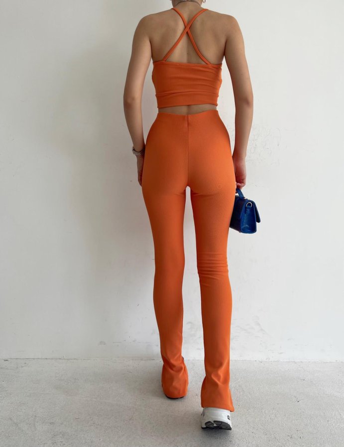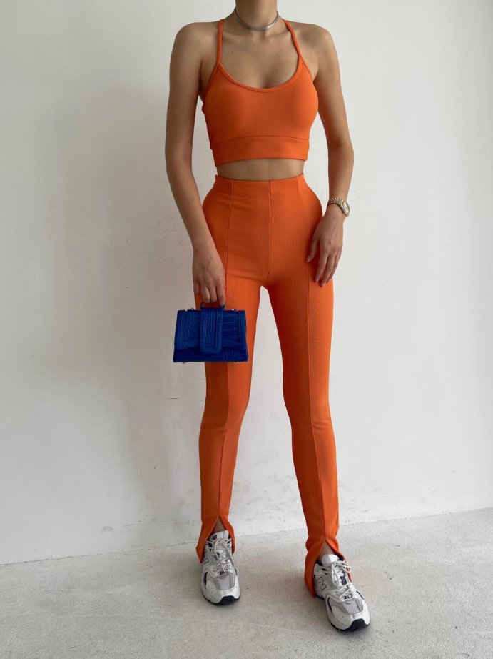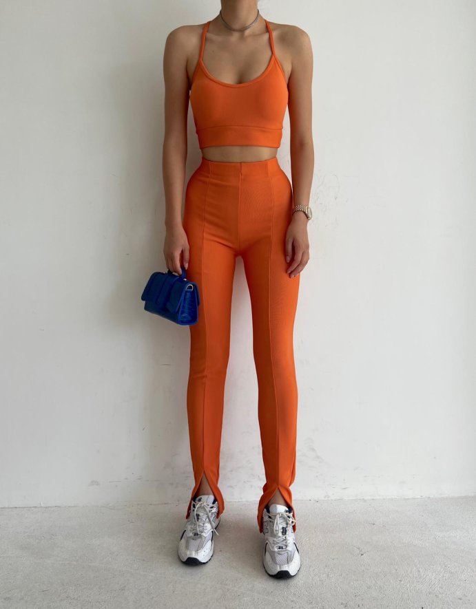 Ön Yırtmaçlı Yüksek Bel Naomi Tayt 6137 - Turuncu