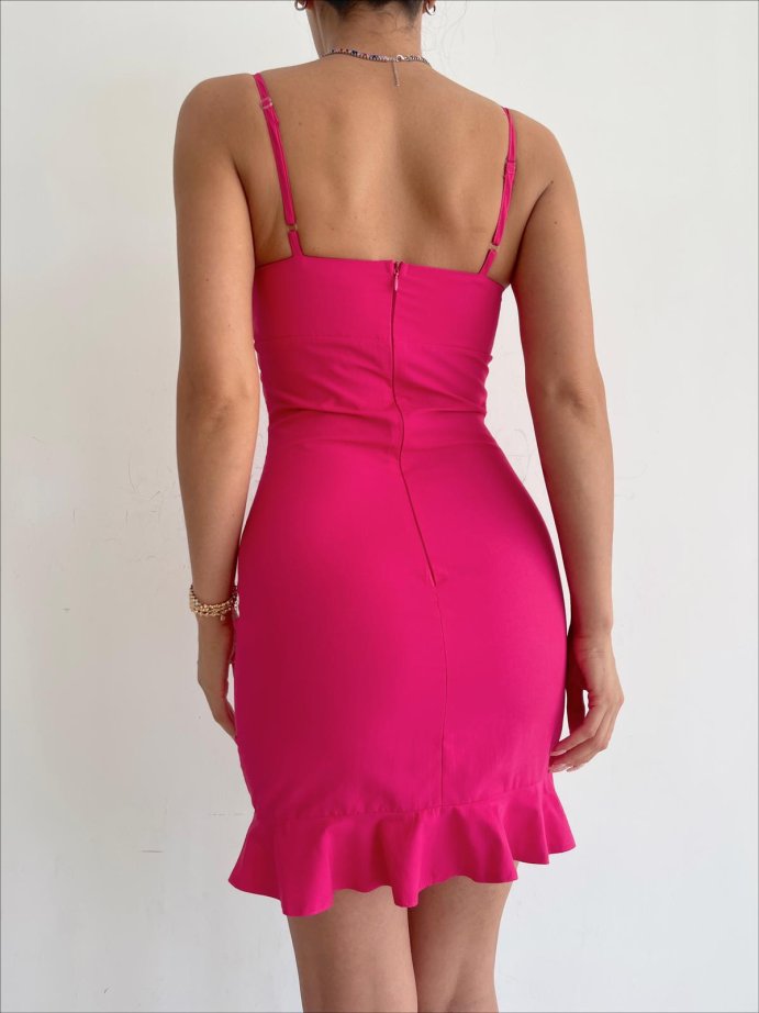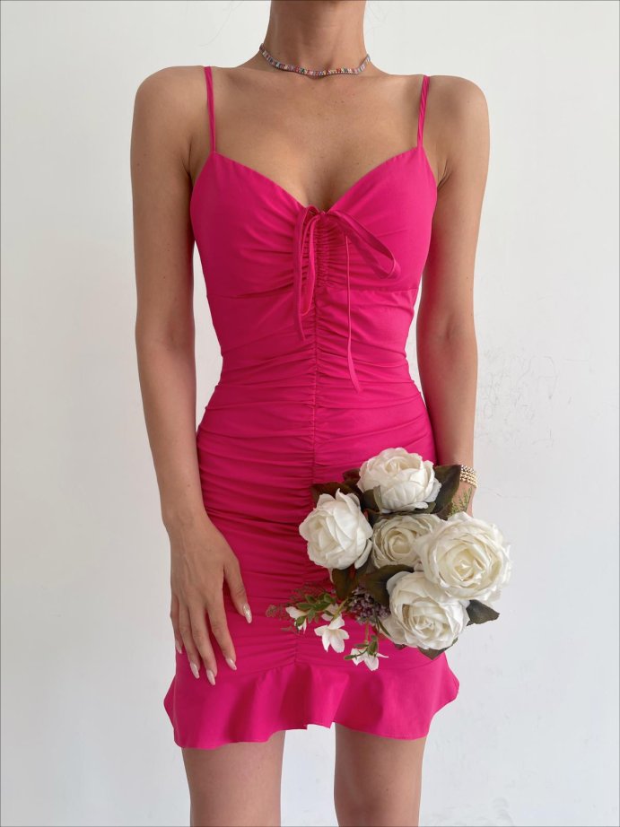 Önü bağcıklı drapeli norbert elbise tam kalıplıdır.