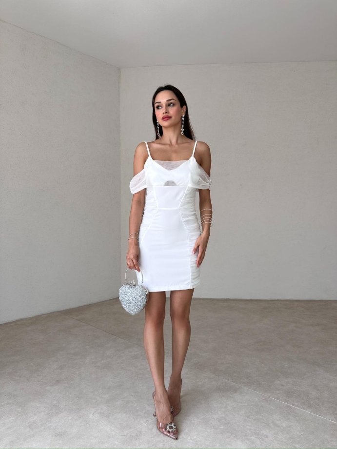 MONDER Mini Elbise 8828 - Beyaz