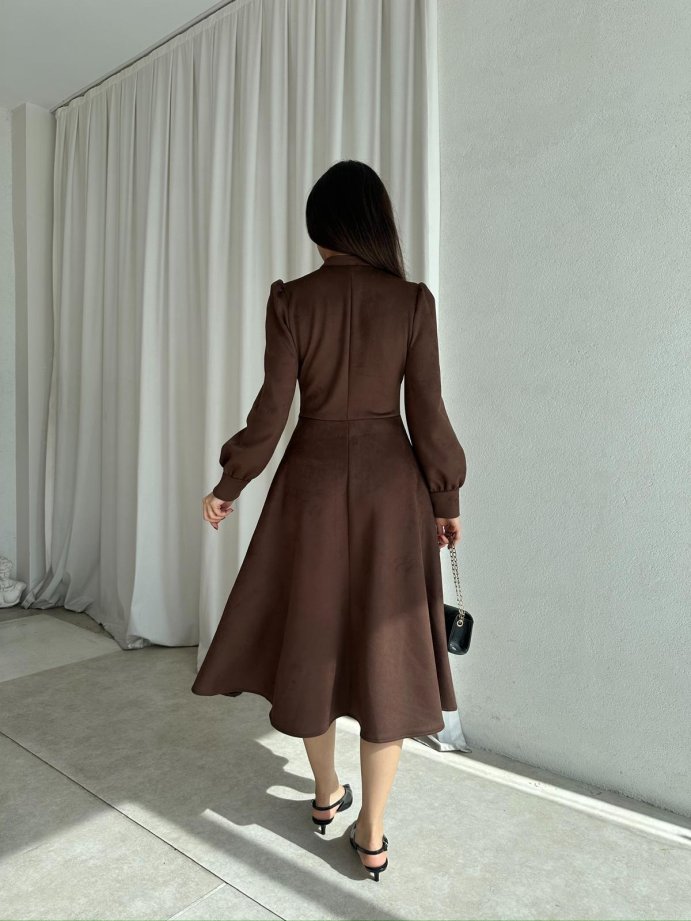 OPAL Süet Midi Elbise 8390 - Acı Kahve