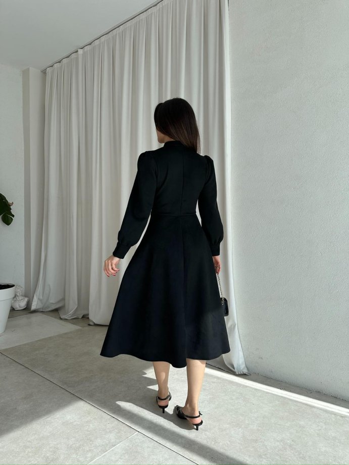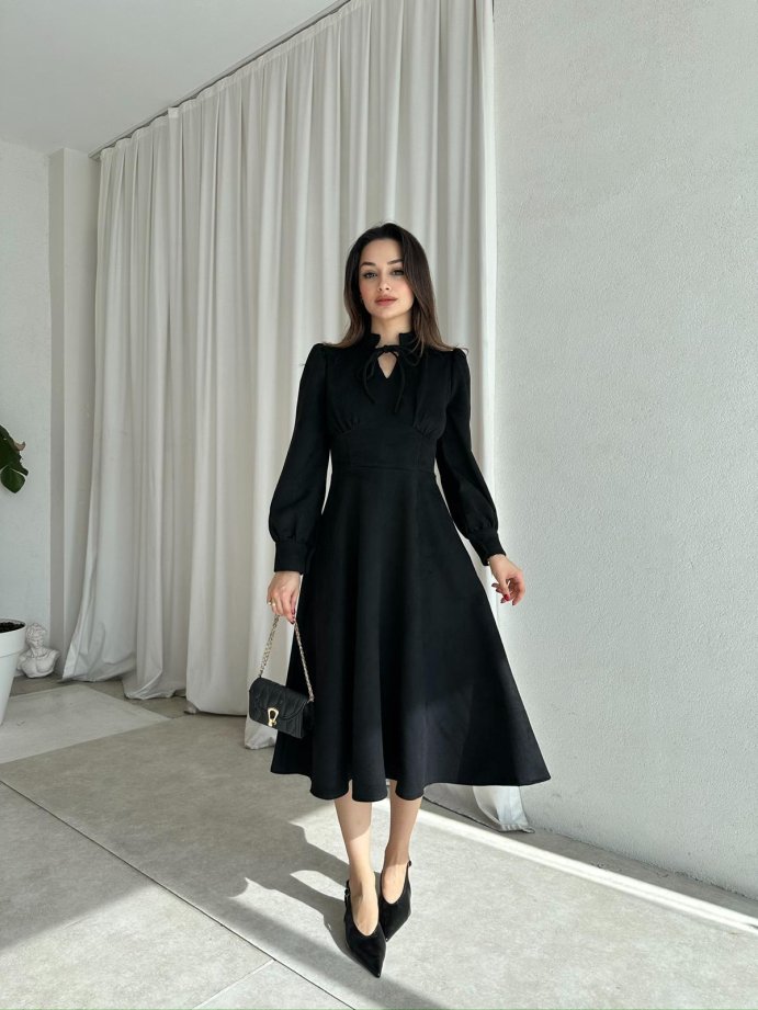OPAL Süet Midi Elbise tam kalıplıdır.
