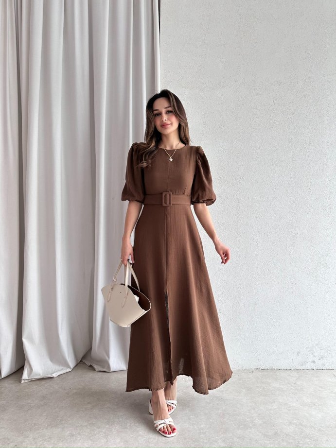 OREGO Maxi Elbise 9454 - Acı Kahve