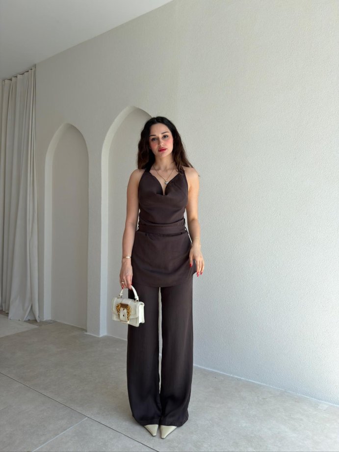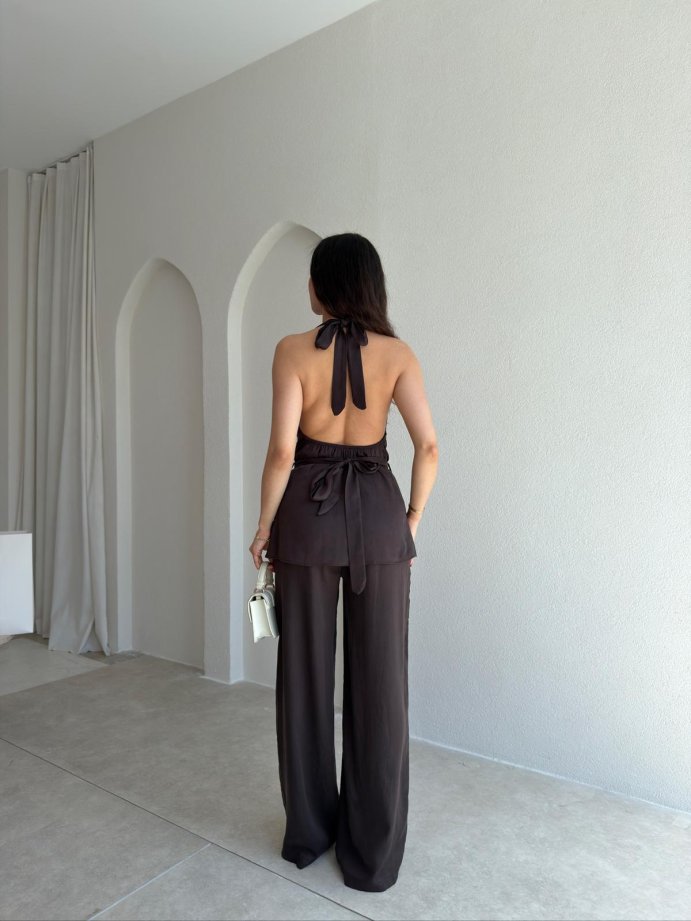 ORENDA Saten Kuşaklı Takım 5487 - Acı Kahve