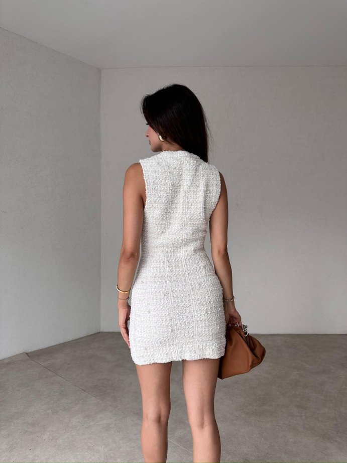 Örgü Desenli İnci Detaylı EDİTH Elbise 1639 - Beyaz