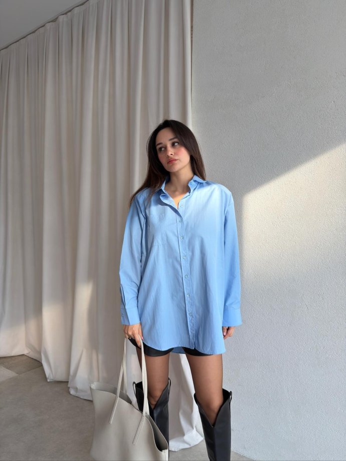 Oversize Basic CAZZİE Gömlek 7294 - Mavi