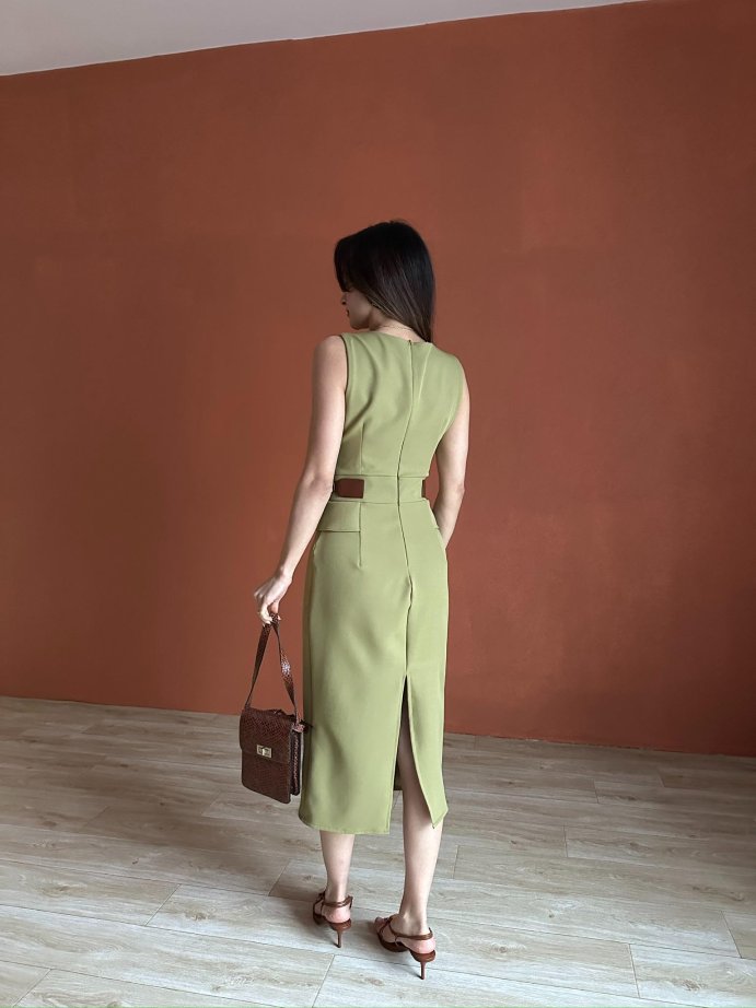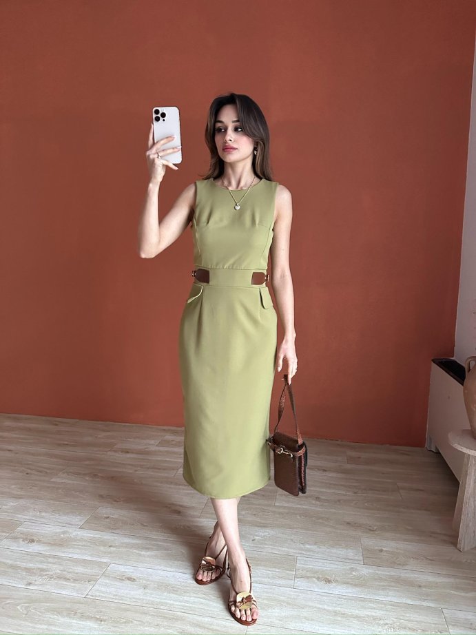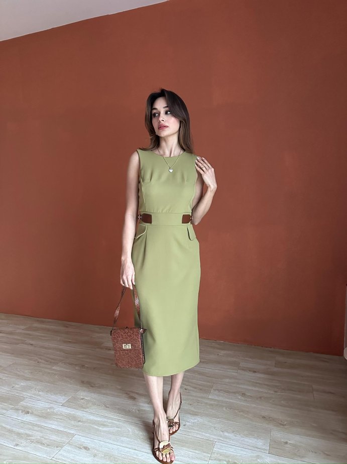 PALONİA Midi Elbise 8976 - Yağ Yeşili