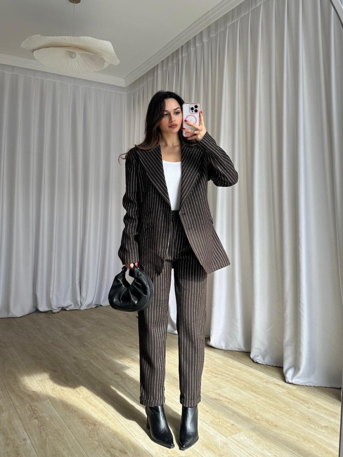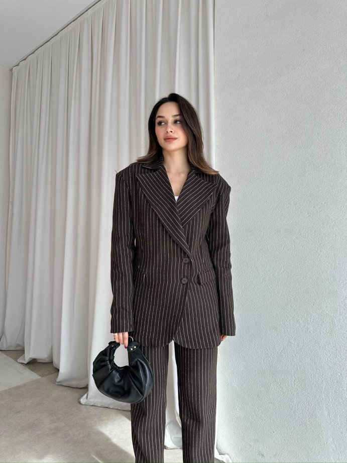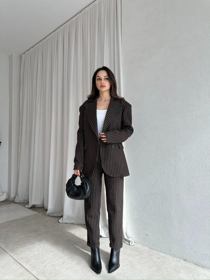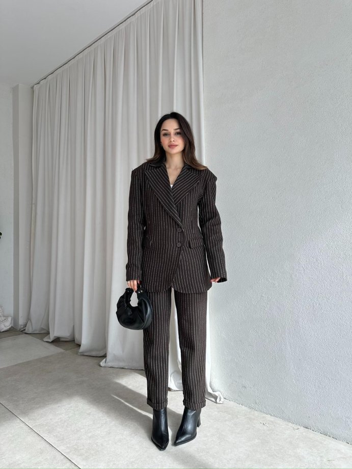 PALVİN Çizgili Takım 8716 - Acı Kahve