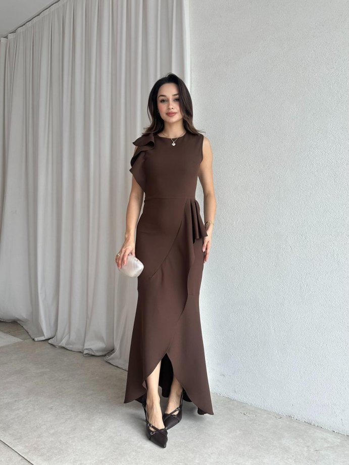 GODWİN Maxi Elbise 6493 - Acı Kahve