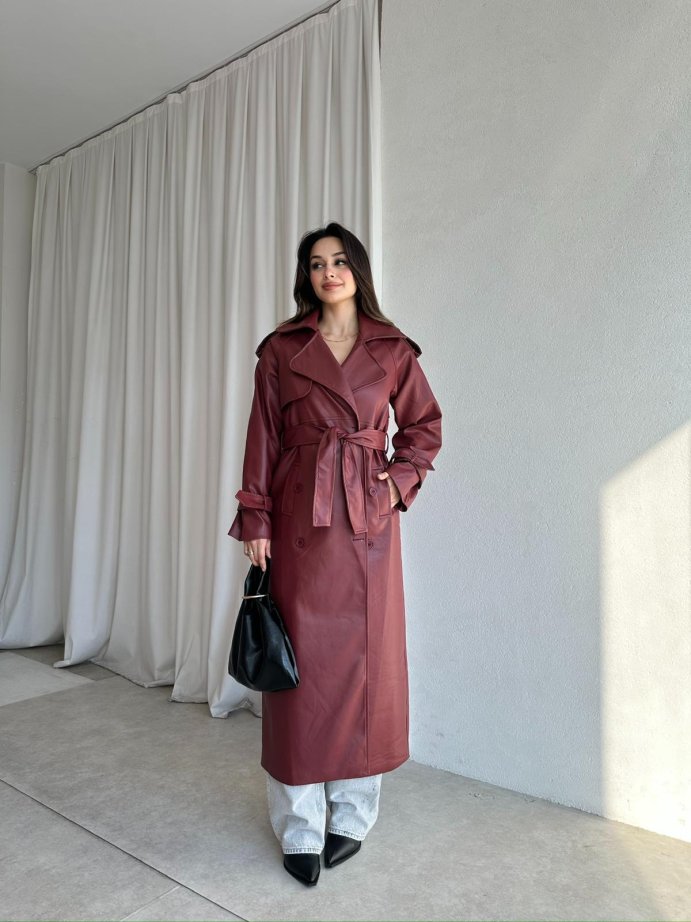 PENNY Deri Trençkot 8487 - Acı Kahve