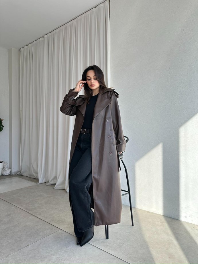 PENNY Deri Trençkot 8487 - Acı Kahve