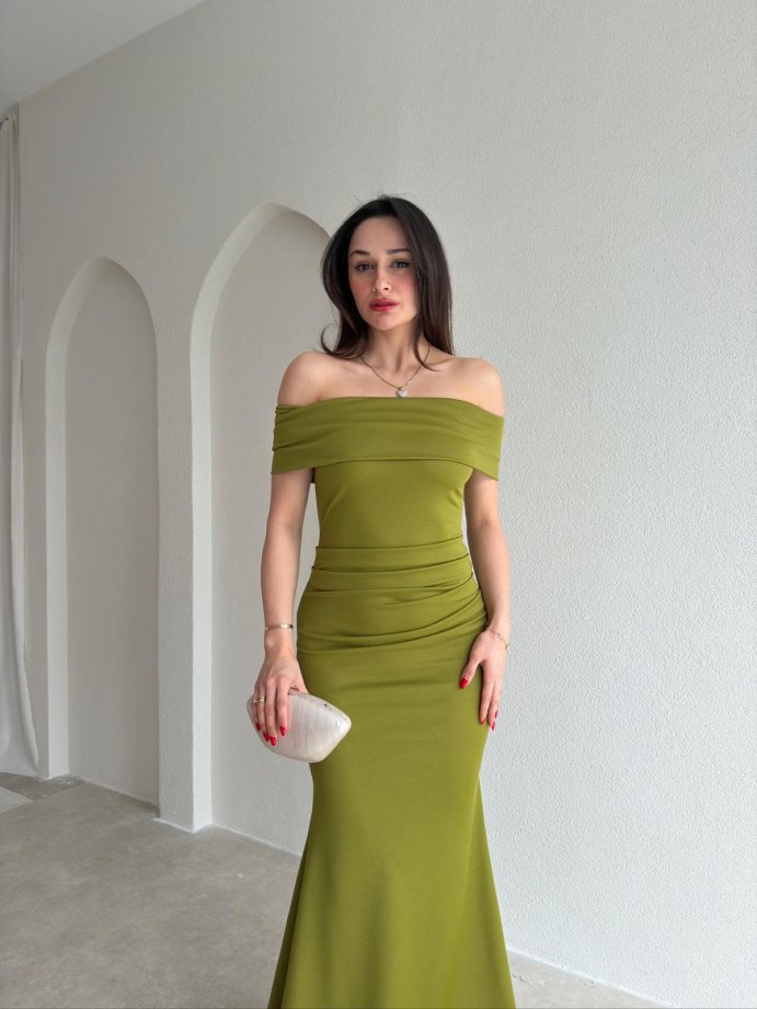 PİSA Maxi Elbise 8993 - Yağ Yeşili