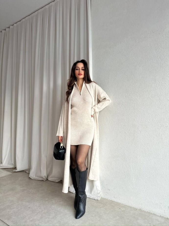 Takım hırkası omuzdan aşağı 124 cm uzunluğundadır.