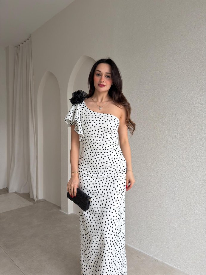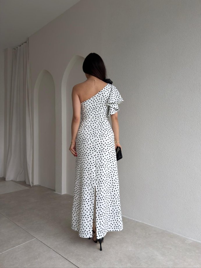PROUD Puantiyeli Tek Omuz Elbise 1809 - Beyaz