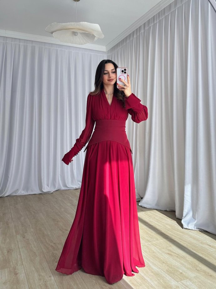 SONYA Maxi Elbise 8770 - Bordo