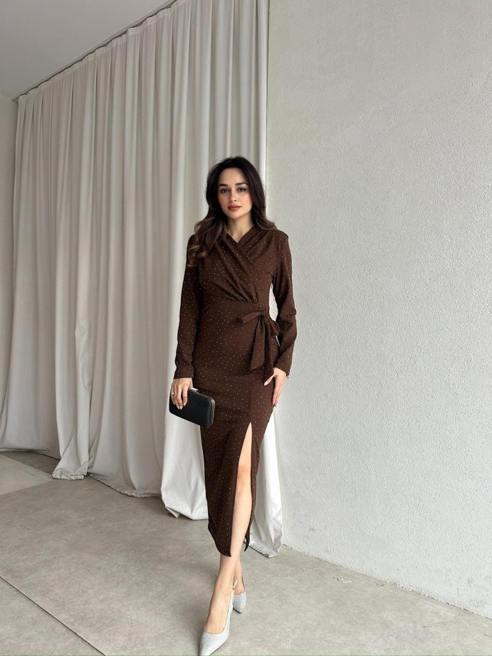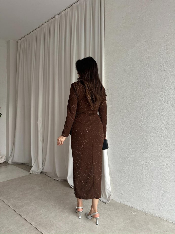 PULCA Taşlı Midi Elbise 8791 - Acı Kahve