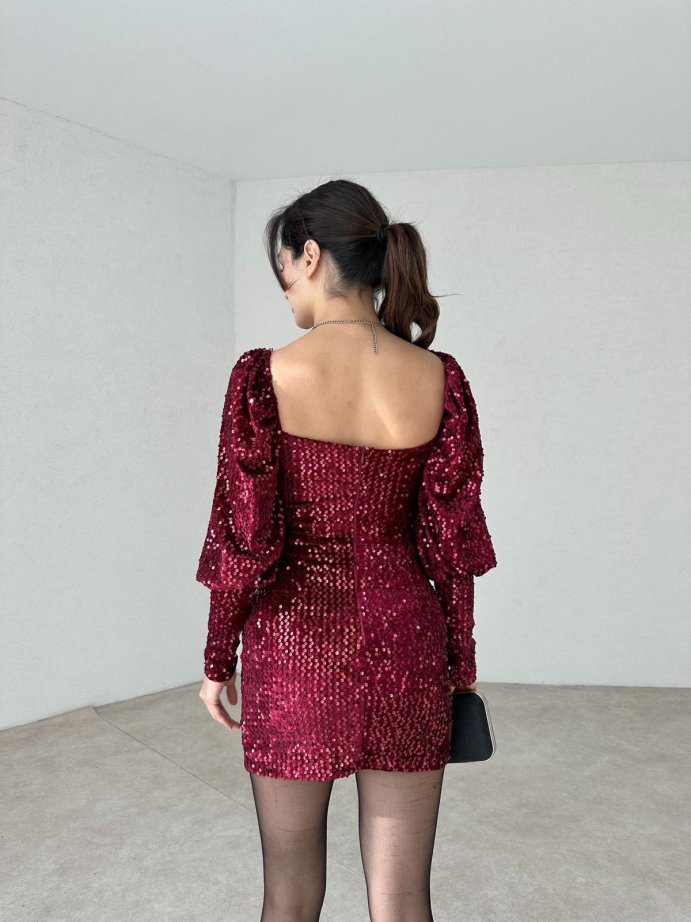 Pullu Mini KENDRİCK Elbise 2849 - Bordo