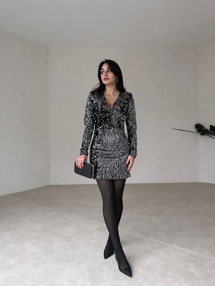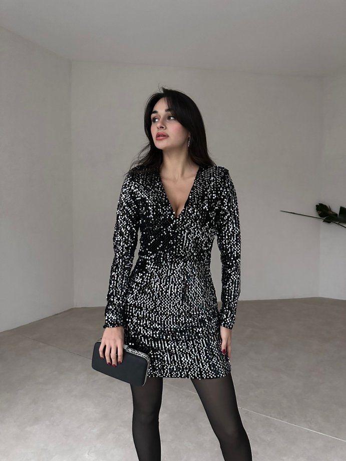 Pullu Mini ROBİNSON Elbise 2845 - Gri