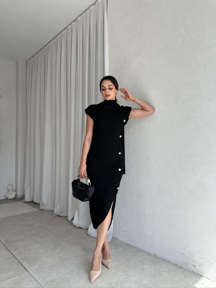 BRİTNEY Maxi Elbise 7218 - Siyah