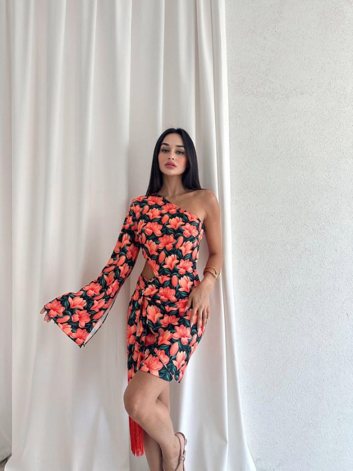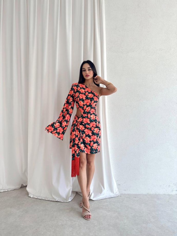 Püskül Detaylı Mini SOLEİL Elbise tam kalıplıdır.