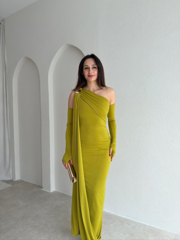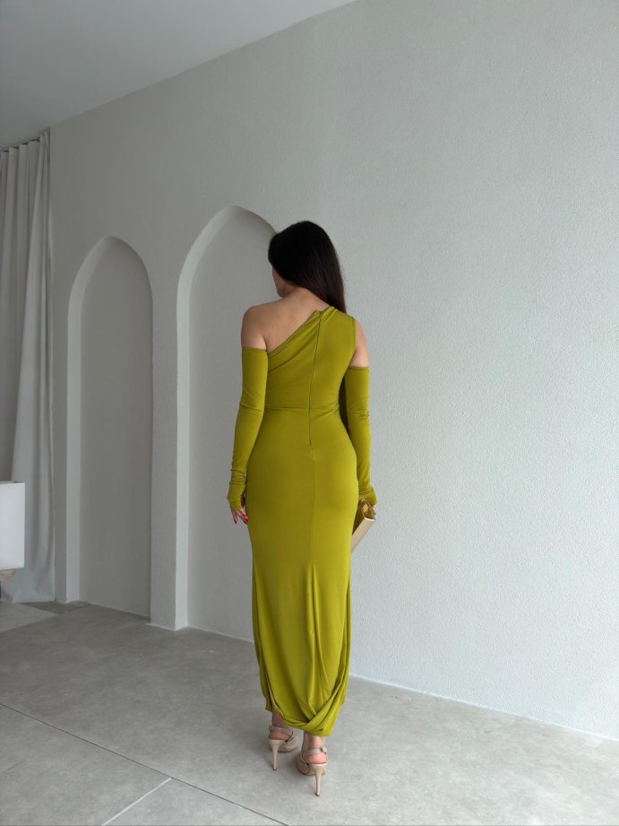 RAMSEY Midi Elbise 3489 - Yağ Yeşili