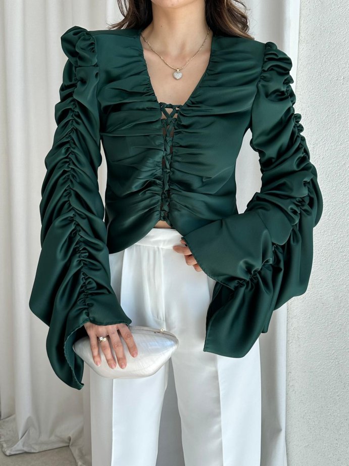 RAVYA Bluz 8607 - Zümrüt Yeşil