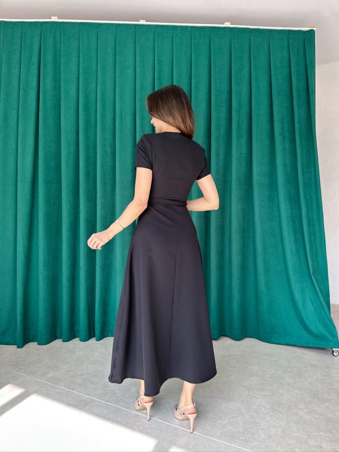 GROZA Dantel Detaylı Midi Elbise 9042 - Siyah