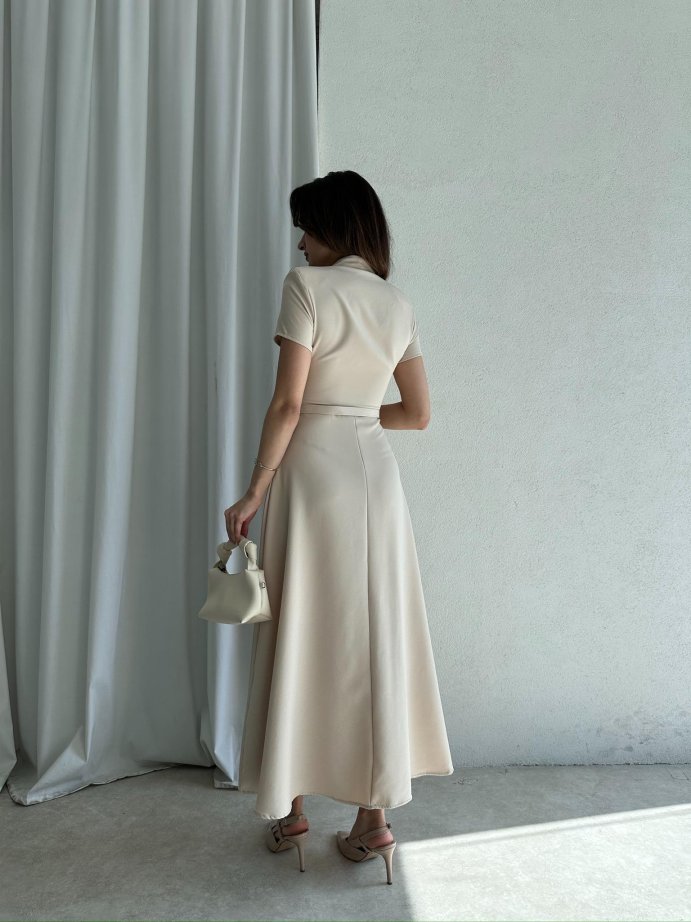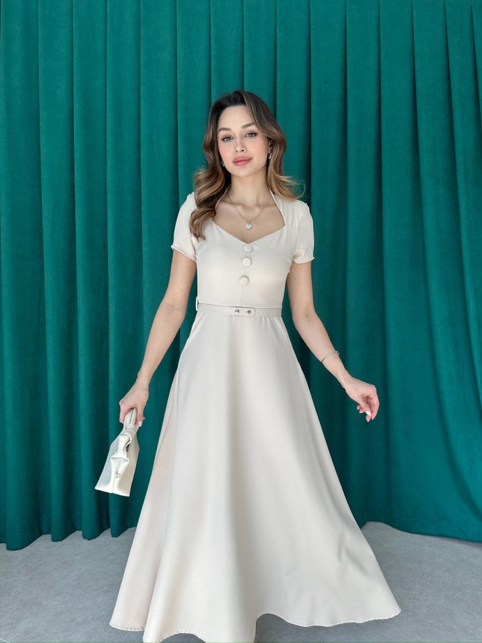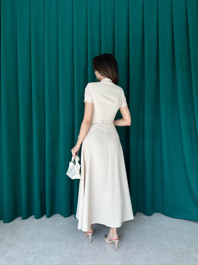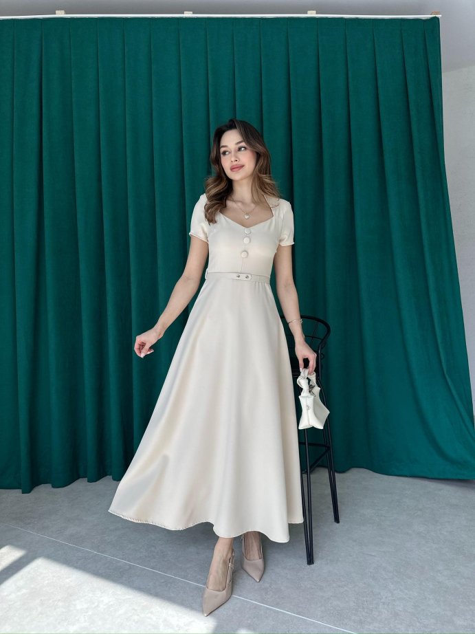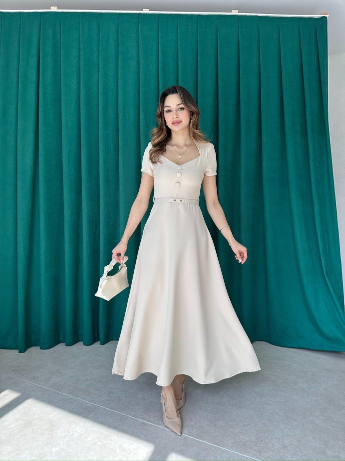 Dekolte Detaylı Midi THALES Elbise 5500 - Taş