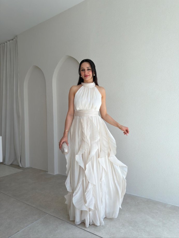REBECA Halter Yaka Maxi Elbise 3772 - Ekru