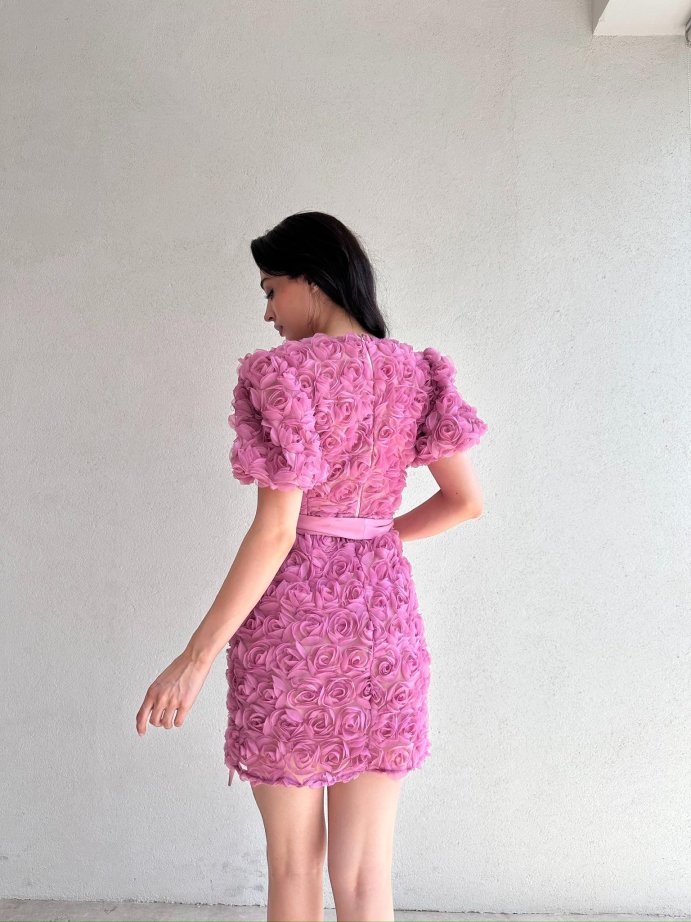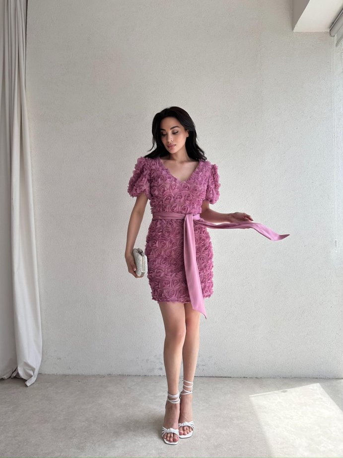 Elbise gül detayları 3 boyutlu tasarımdır.
