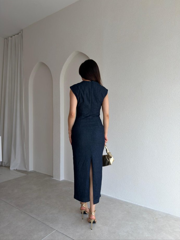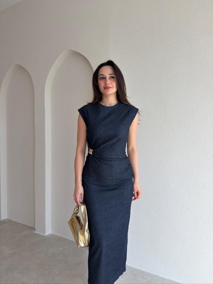 REGİNA DENİM Midi Elbise tam kalıplıdır.