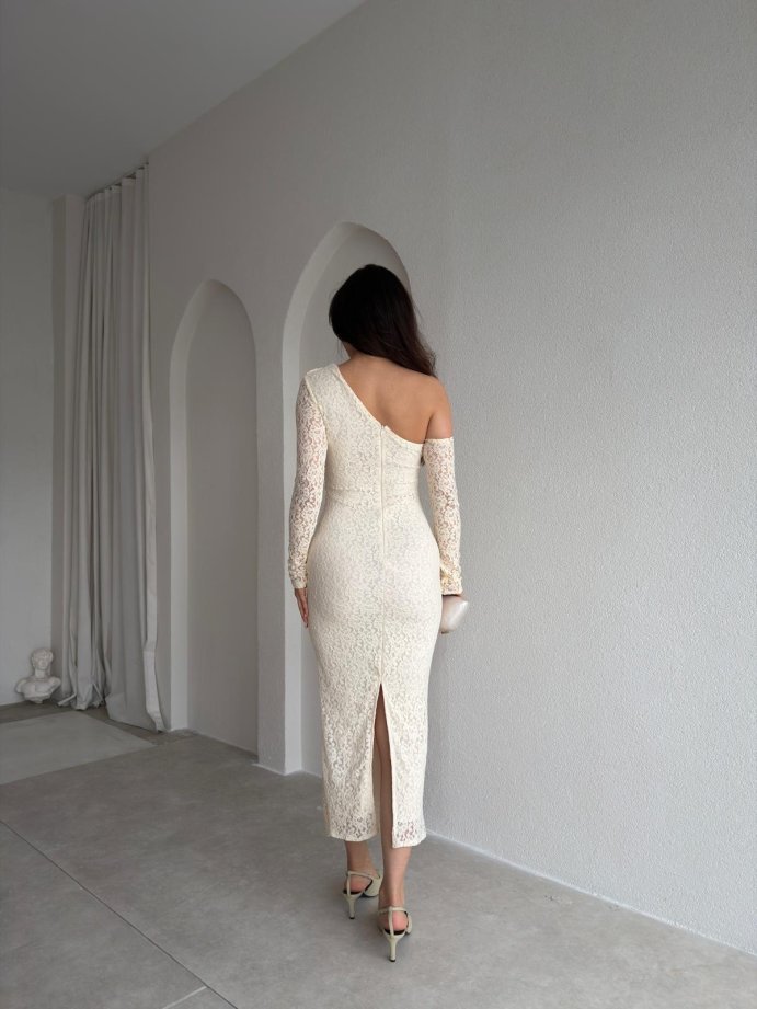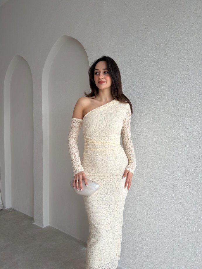 Elbise sağ omuz açıktır.