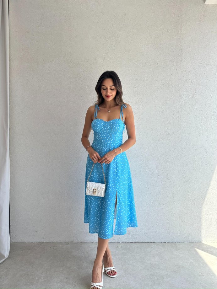 Dekolte Detaylı Midi THALES Elbise 5500 - Taş
