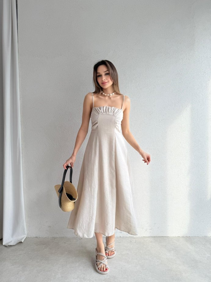 REYNA Midi Elbise 3474 - Taş
