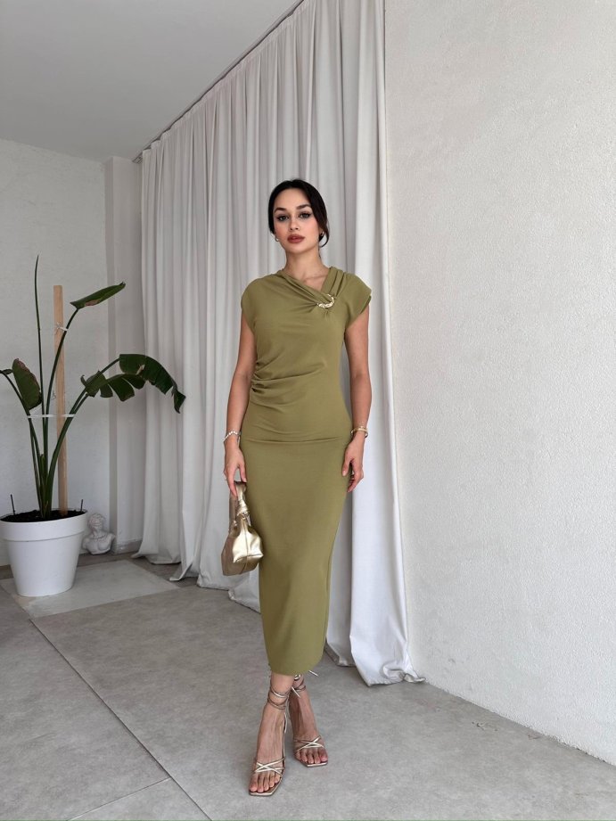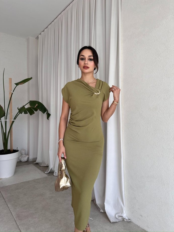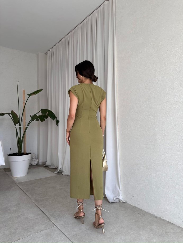 RİBELLA Midi Elbise 8313 - Yağ Yeşili