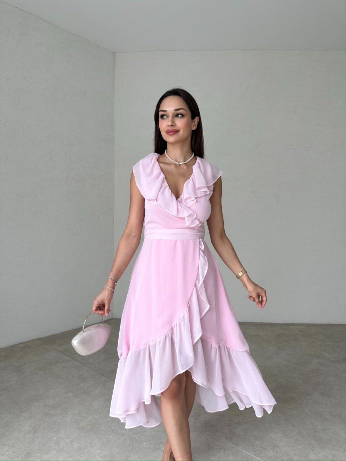 Dekolte Detaylı Midi THALES Elbise 5500 - Taş